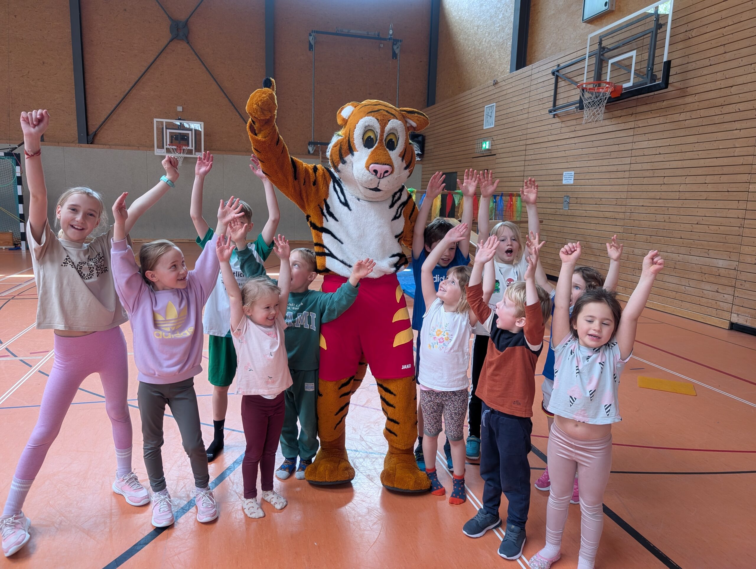 Ein besonderes Highlight des Vormittags war der Besuch des Turntigers, der beim Turntiger-Tanz sein Können zeigte. Begeistert machten alle Kinder – und auch viele Erwachsene – mit und sorgten für eine tolle Stimmung in der Halle.