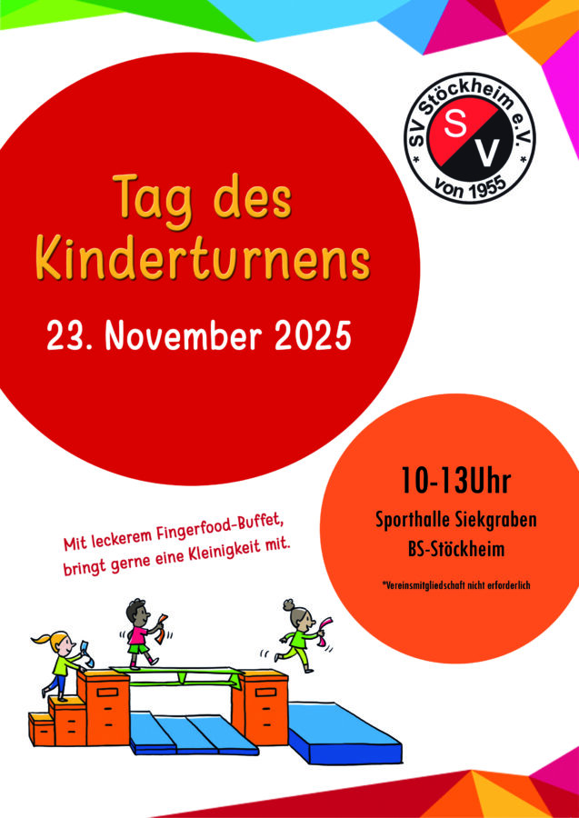 Liebe Eltern, bitte beachten Sie, dass eine spontane Teilnahme an den Kinderturngruppen aufgrund der hohen Auslastung der einzelnen Gruppen nicht möglich ist. Bedenken Sie bitte, dass es sowohl für Ihre Kinder als auch die entsprechenden Turnleiter unerfreulich ist, Sie wieder nach Hause schicken zu müssen! Melden Sie sich daher bitte unbedingt vor Ihrem ersten Besuch per E-Mail unter kinderturnen@sv-stoeckheim.de, um einen Termin zu vereinbaren. Auch Schnupperstunden sind möglich, schauen Sie dazu gerne auch auf die häufig gestellten Fragen (FAQ’s) unten auf dieser Seite.